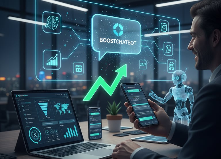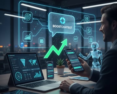 Boost Chatbot é IA avançada que atua como SDR, closer, suporte e cobrança, qualificando leads, fechando vendas, atendendo clientes e automatizando cobranças via WhatsApp com eficiência e personalização..